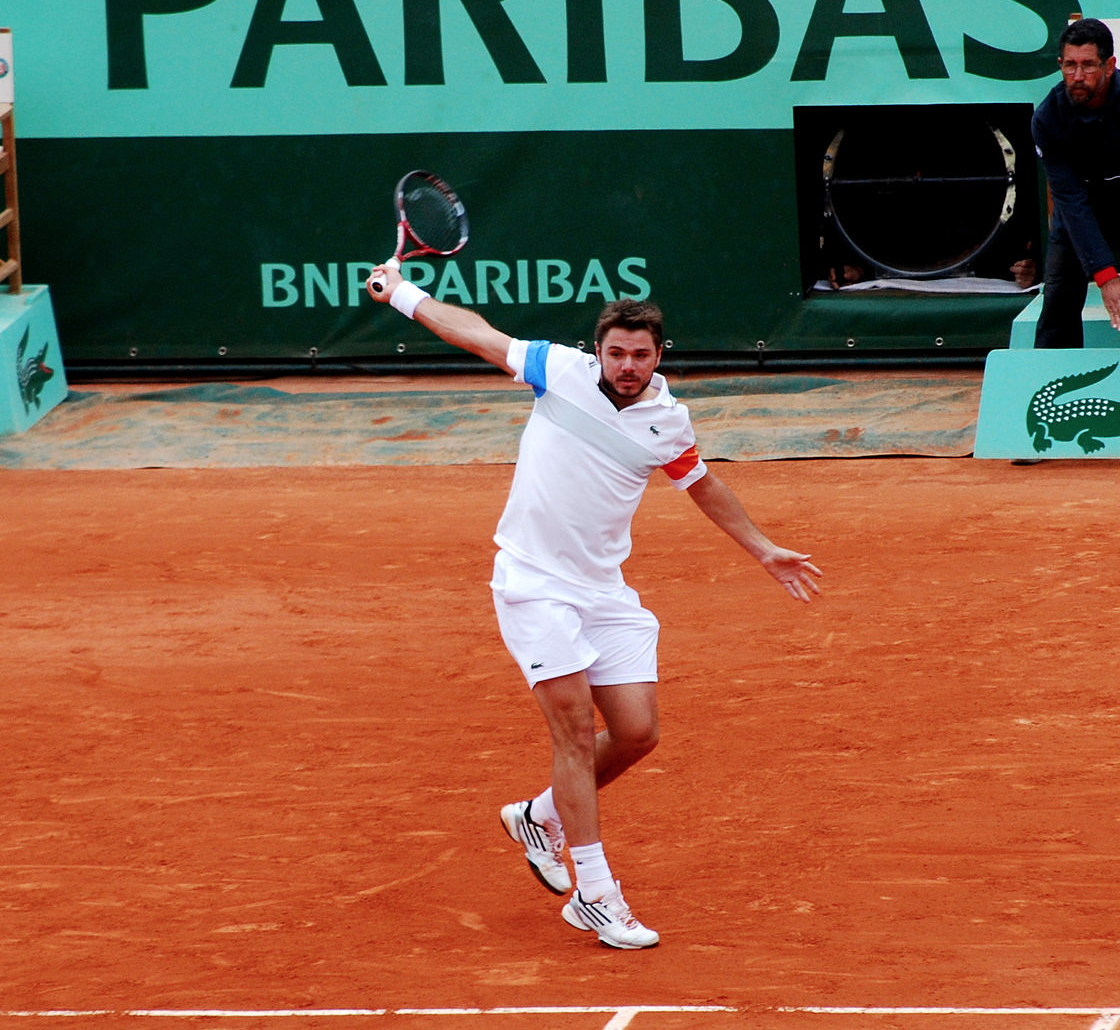 Op onderstaande foto is goed te zien hoe Stan Wawrinka volledig door zwaait met zijn racket.